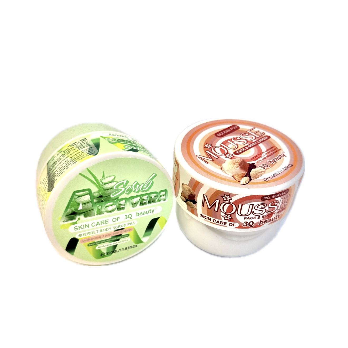 - پک اسکراب و مرطوبکننده ۳Q Beauty شامل اسکراب بدن شربتی آلوئهورا و کرم مرطوبکننده آووکادو است که به صورت همزمان پاکسازی و تغذیه پوست شما را انجام میدهند.